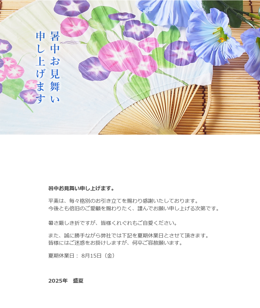 昨年は格別のお引立てを賜り厚く御礼申し上げます。